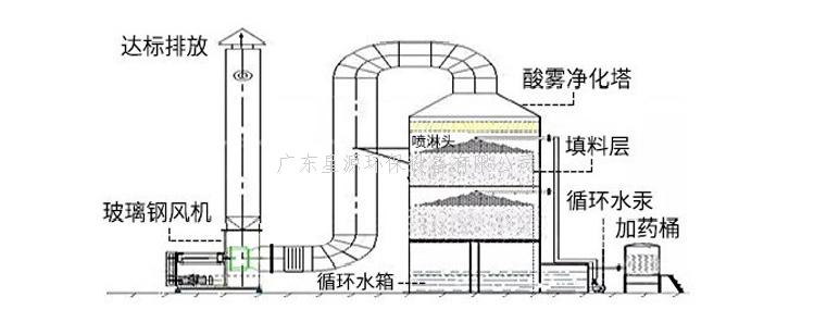 運行時應(yīng)先起動液泵,后起動通風(fēng)機,停機時與之相反。對于凈化吸收液,循環(huán)液檢測,根據(jù)工藝生產(chǎn)周期的長短,循環(huán)液自然損耗的多少,定期測量酸堿度和補充新液。