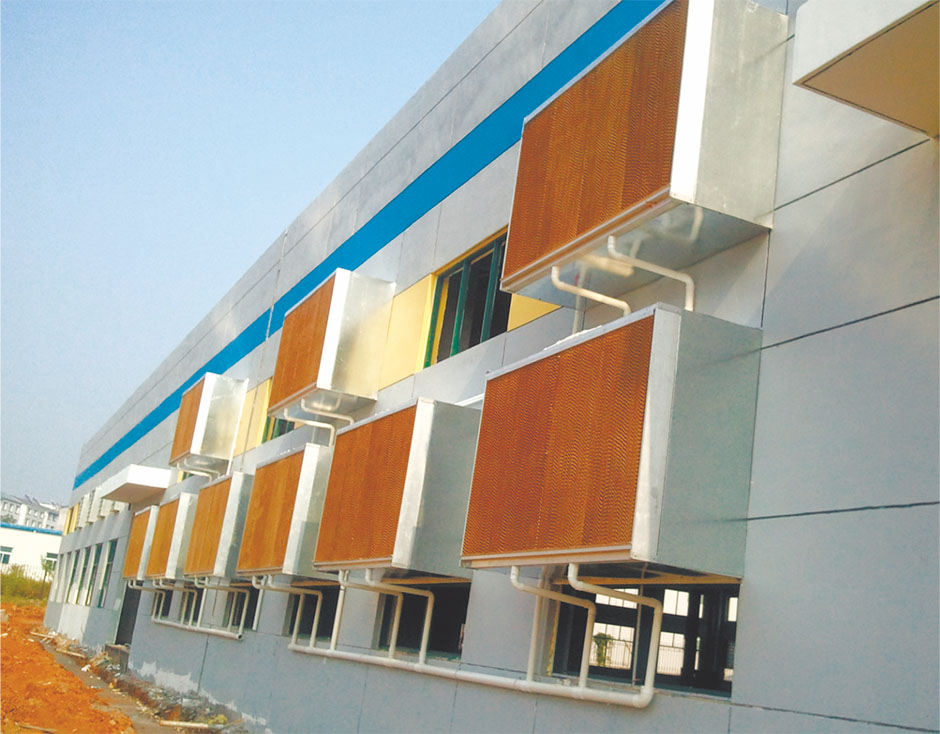 ◆主要材料介紹:水簾降溫工程利用和環(huán)??照{(diào)相同的降溫原理,將水簾和負(fù)壓風(fēng)機(jī)完美結(jié)合利用。其利用的蒸發(fā)器同樣是直接蒸發(fā)式換熱器“多層波纖維疊合物”水簾是瑞典的專(zhuān)利產(chǎn)品,是經(jīng)特殊處理的7090型“波紋纖維紙疊合物‘,有良好的吸水性能和通風(fēng)性能;耐水浸泡不變型;耐腐蝕,正常使用壽命可超過(guò)5年。由于其利用水簾面積比環(huán)??照{(diào)大,所以其降溫效果要好于環(huán)??照{(diào),可以達(dá)到4-13℃的降溫幅度。和環(huán)??照{(diào)降溫工程的不同點(diǎn)是水簾降溫是針對(duì)某個(gè)完整且相對(duì)封閉的區(qū)域,且在水簾厚度方面有100mm和150mm供選擇。