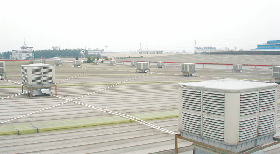 水簾降溫工程中運(yùn)用的負(fù)壓風(fēng)機(jī)一般采用百葉風(fēng)機(jī)、具有噪音低、風(fēng)量大、耗能小、運(yùn)行平穩(wěn)、壽命長(zhǎng)、效率高,并擁有百葉自動(dòng)開(kāi)啟、關(guān)閉系統(tǒng)。達(dá)到防塵、防水、美觀等效果,是現(xiàn)代化廠房通風(fēng)最佳選擇。